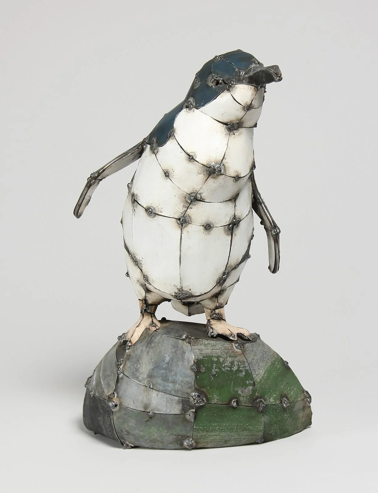 Kidd's sculptures are celebrated for their life-size or larger-than-life representations, often depicting animals and humans engaged in familiar activities. Her creative process begins with drawings, which serve as templates for building intricate steel frameworks. These frameworks are then clad in recycled or flattened corrugated iron, sometimes painted with enamel or acrylic paints. The result is a dynamic fusion of industrial materials and expressive artistry.